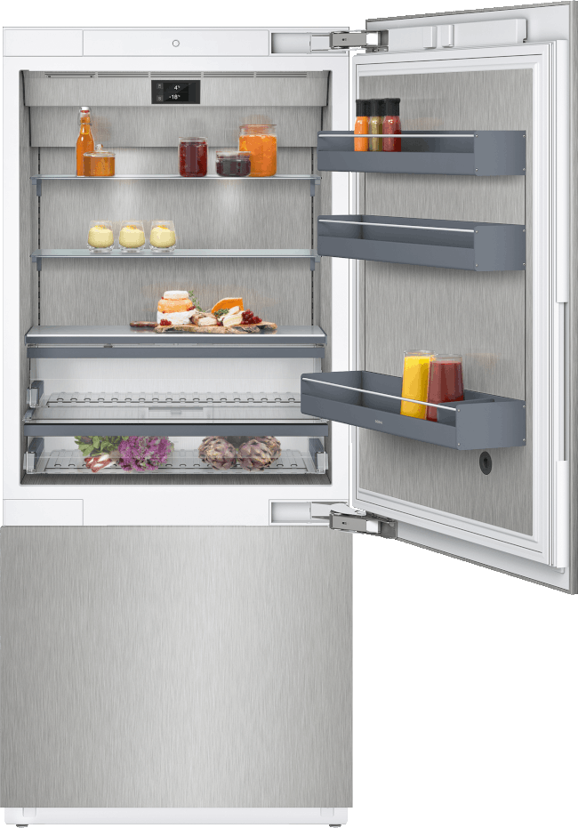 • Полностью выдвижной морозильный ящик с удобным разделителем в цвете "темный антрацит"